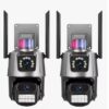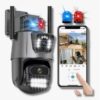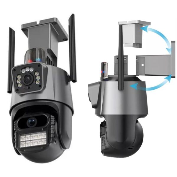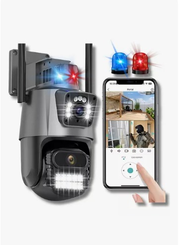 Câmera com Lente dupla, tela dupla, zoom 4x, alarme de luz policial, rastreamento humano, monitoramento de voz bidirecional 360, visão noturna colorida, monitoramento remoto pelo celular, compartilhar vídeo, armazenamento do cartão SD, vídeo de gravação de 24 horas.
